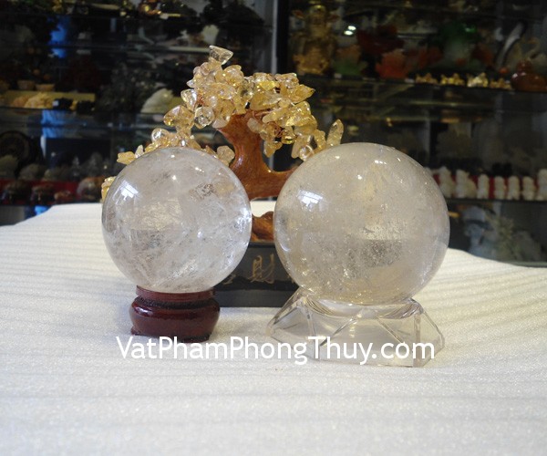 + Chất liệu và hoàn thiện: Qủa cầu đá thạch anh trắng tinh thể (tại Việt Nam).