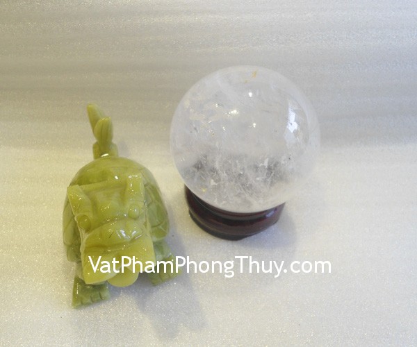 + Chất liệu và hoàn thiện: Qủa cầu đá thạch anh trắng tinh thể (tại Việt Nam).