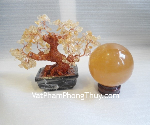 + Chất liệu và hoàn thiện: Quả cầu đá thạch anh vàng non (tại Việt Nam).