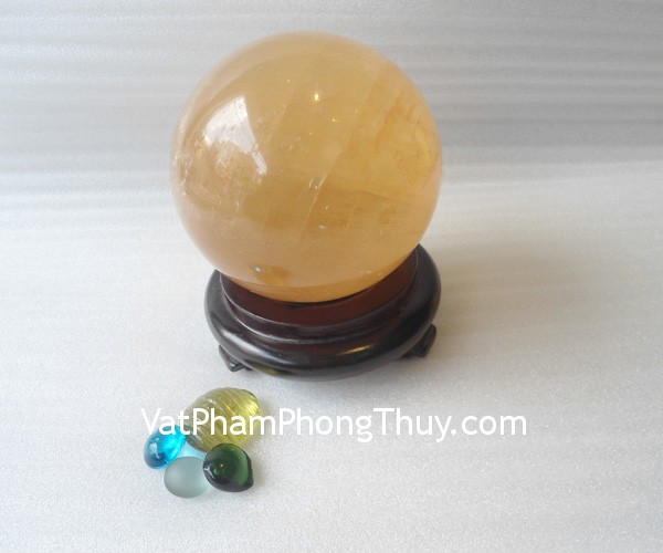 + Chất liệu và hoàn thiện: Quả cầu đá thạch anh vàng non (tại Việt Nam).