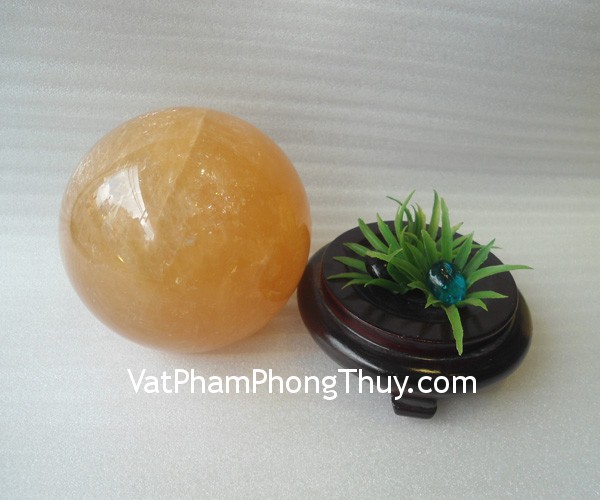 + Chất liệu và hoàn thiện: Quả cầu đá thạch anh vàng non (tại Việt Nam).