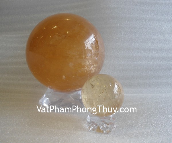 + Chất liệu và hoàn thiện: Qủa cầu đá thạch anh vàng non (tại Việt Nam).