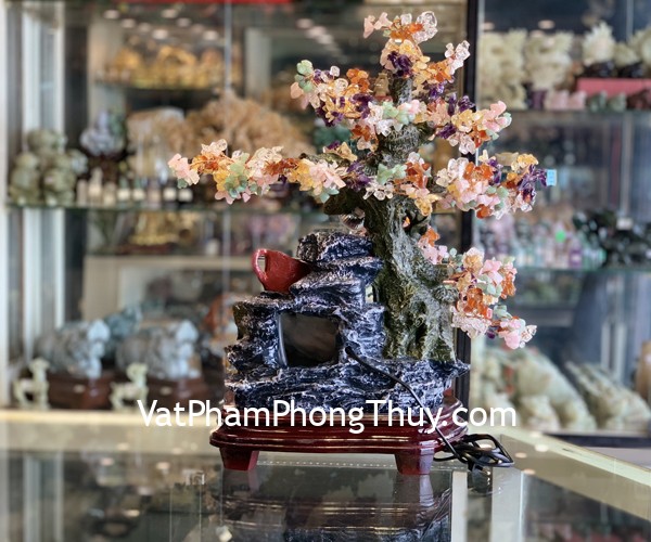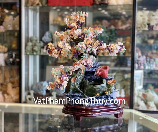 + Chất liệu và hoàn thiện: Cây phong thủy luân thạch anh nhiều màu có đèn (hoàn thiện tại Việt Nam).