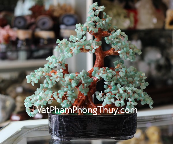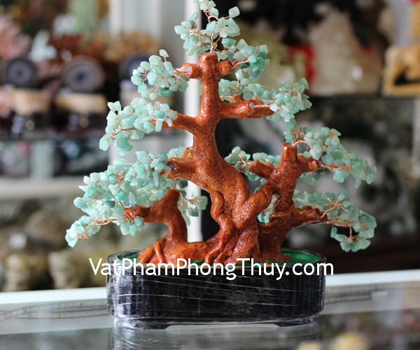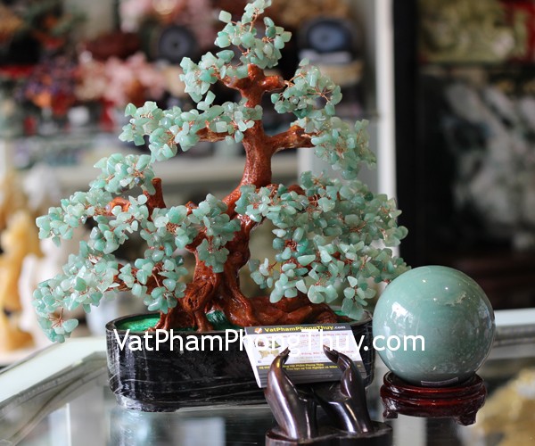 + Chất liệu và hoàn thiện: Cây tài lộc đá ngọc Đông Linh (thạch anh xanh), Hồng Kông.