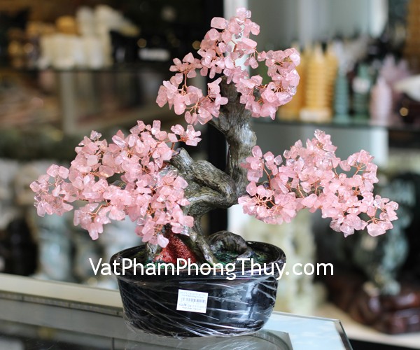 + Chất liệu và hoàn thiện: Cây tài lộc đá thạch anh hồng, gốc tròn, size trung (tại Việt Nam).