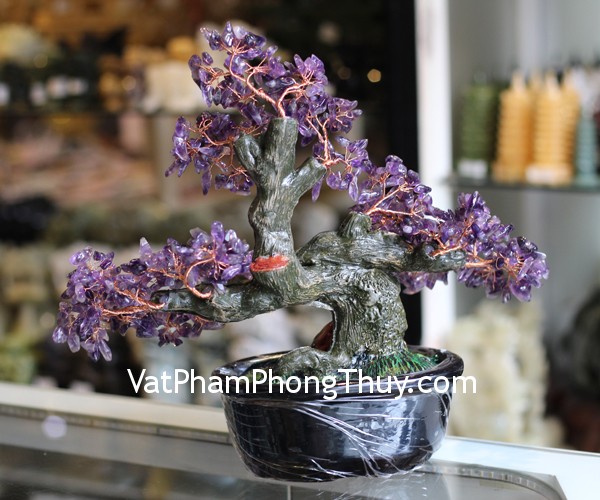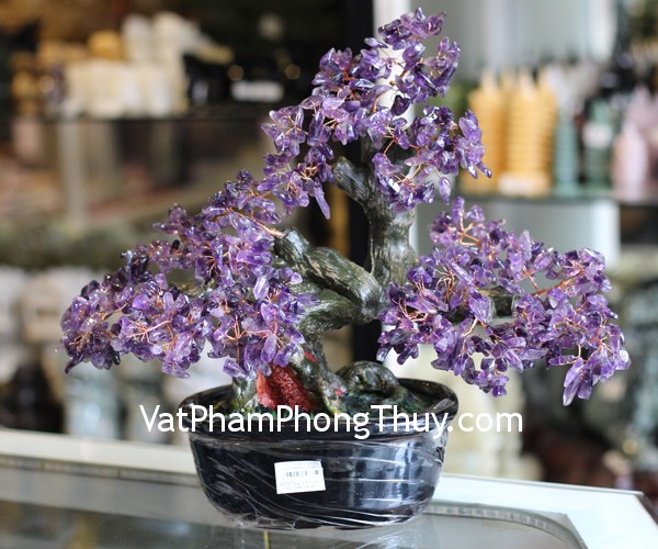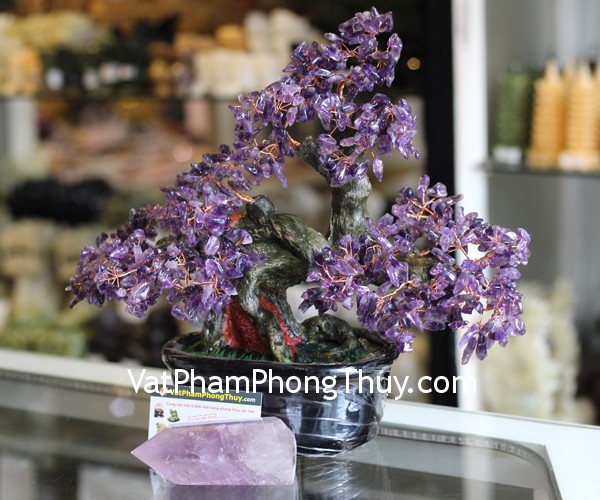 + Chất liệu và hoàn thiện: Cây tài lộc đá thạch anh tím, gốc tròn, size trung (tại Việt Nam).