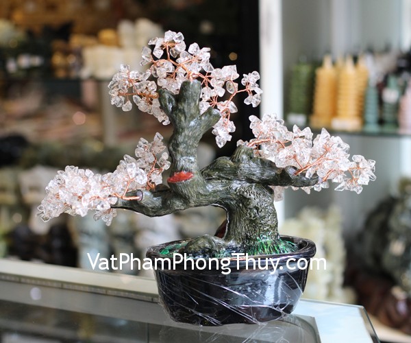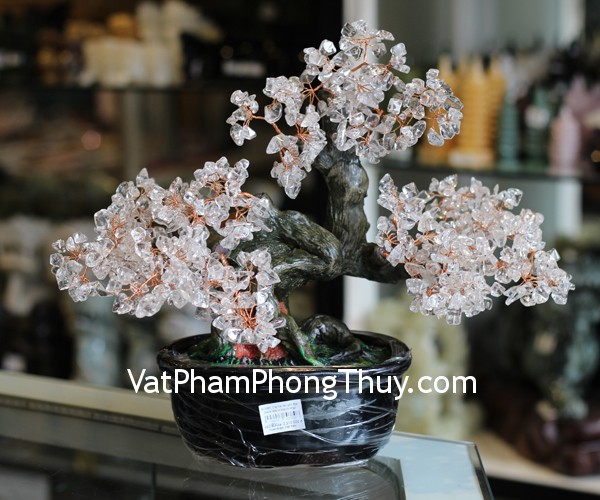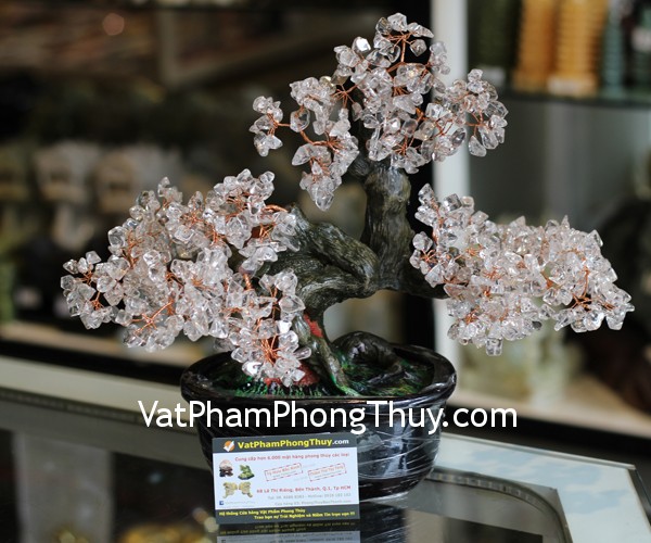 + Chất liệu và hoàn thiện: Cây tài lộc đá thạch anh trắng, gốc tròn, size trung (tại Việt Nam).