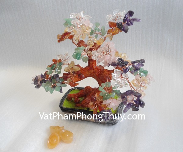 + Chất liệu và hoàn thiện: Cây tài lộc đá thạch anh nhiều màu, chậu vuông (tại Việt Nam).