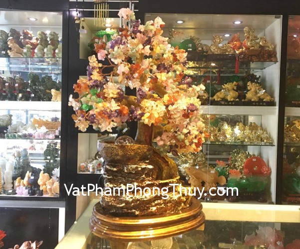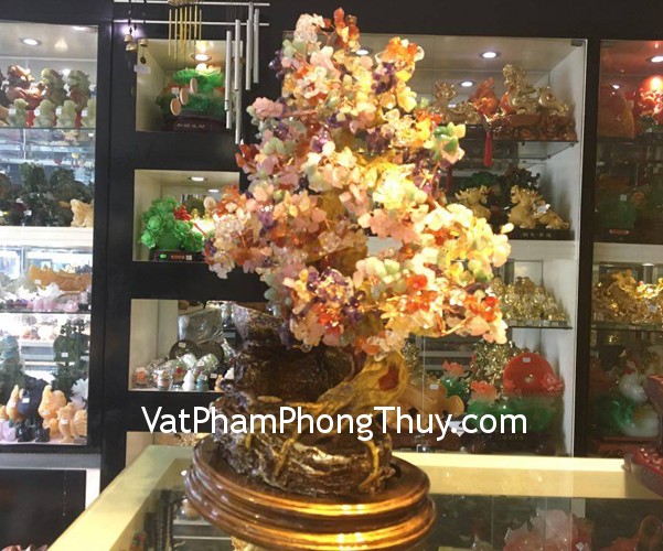 + Chất liệu và hoàn thiện: Cây tài lộc phong thủy luân đá thạch anh nhiều màu lớn (tại Việt Nam).