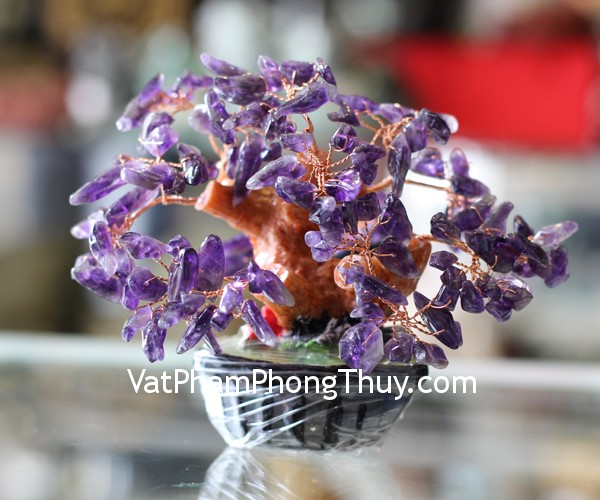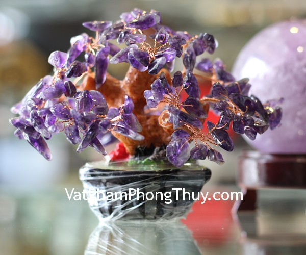 + Chất liệu và hoàn thiện: Cây tài lộc thạch anh tím, chậu tròn lớn (tại Việt Nam).