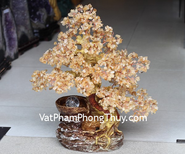 + Chất liệu và hoàn thiện: Cây tài lộc phong thủy luân đá thạch anh vàng lớn (tại Việt Nam).