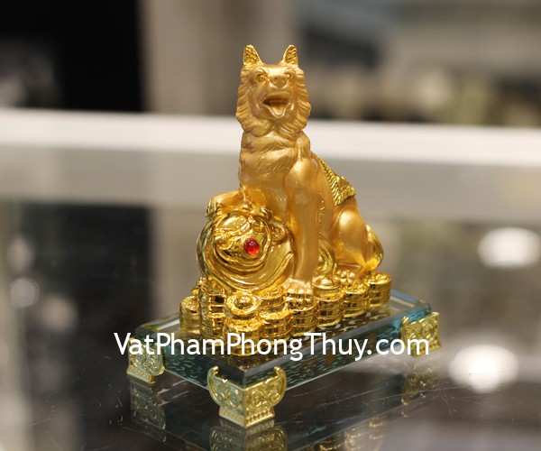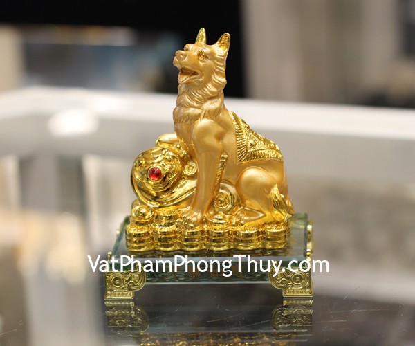 + Chất liệu và hoàn thiện: Tượng chó săn vàng (Tuất) trên gậy như ý vàng, đế thủy tinh, bột đá mạ vàng cao cấp (tại Việt Nam).
