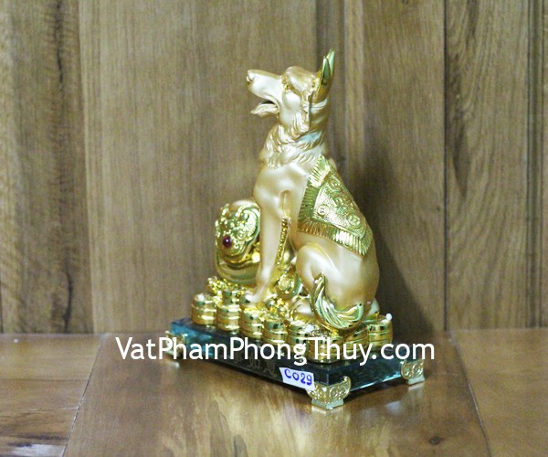 + Chất liệu và hoàn thiện: Tượng chó săn vàng (Tuất) bên như ý, đế thủy tinh, bột đá màu cao cấp (tại Việt Nam).