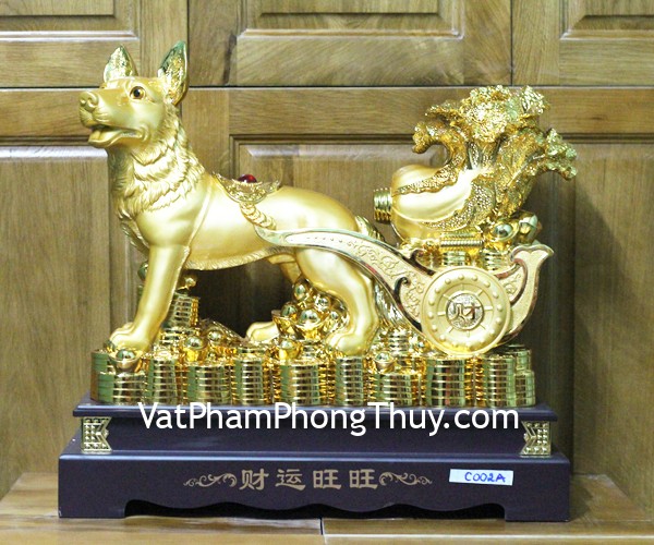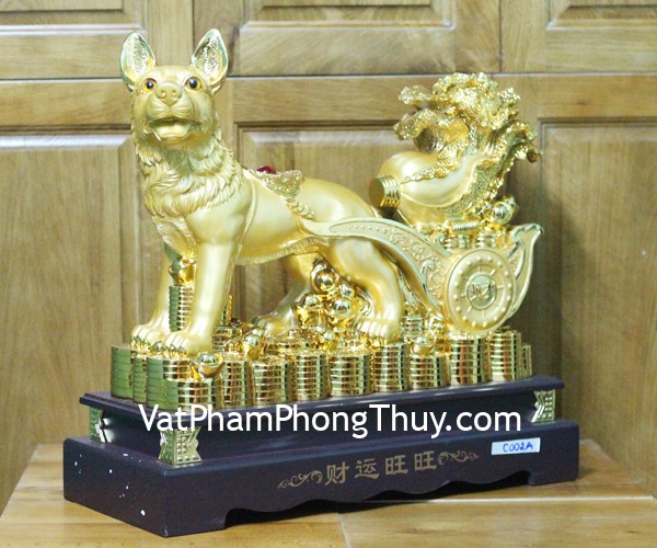 + Chất liệu và hoàn thiện: Tượng chó vàng (Tuất), kéo xe bắp cải bột đá mạ vàng cao cấp (tại Việt Nam).