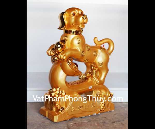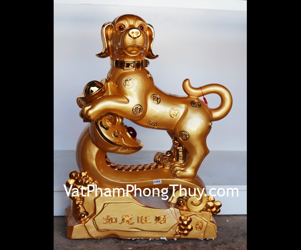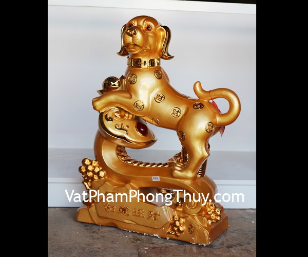 + Chất liệu và hoàn thiện: Tượng chó vàng (Tuất), trên gậy như ý bột đá mạ vàng cao cấp (tại Việt Nam).