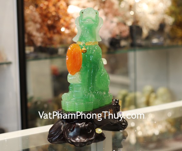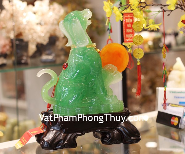 + Chất liệu và hoàn thiện: Tượng chó xanh (Tuất) đứng bên trăng, có đế gỗ, bột đá màu cao cấp (tại Việt Nam).