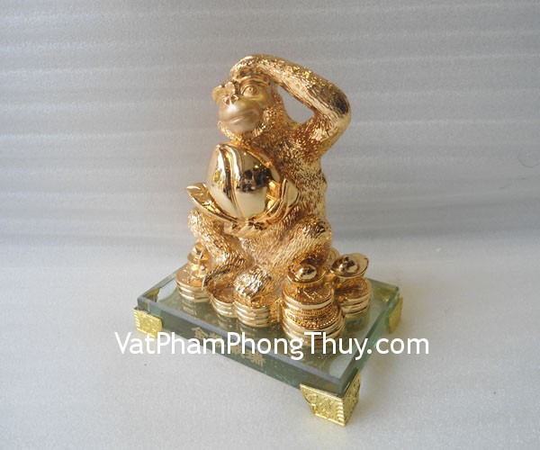 + Ý nghĩa :Chúa khỉ ngồi ôm đào đế thủy tinh – kim hầu hiến thị, biểu tượng cho sự kiên cường, nhanh nhạy và thông minh. Linh vật may mắn, bảo trợ sức khỏe, tượng trưng cho mọi việc đều tốt đẹp, công việc vững chắc, thăng tiến.