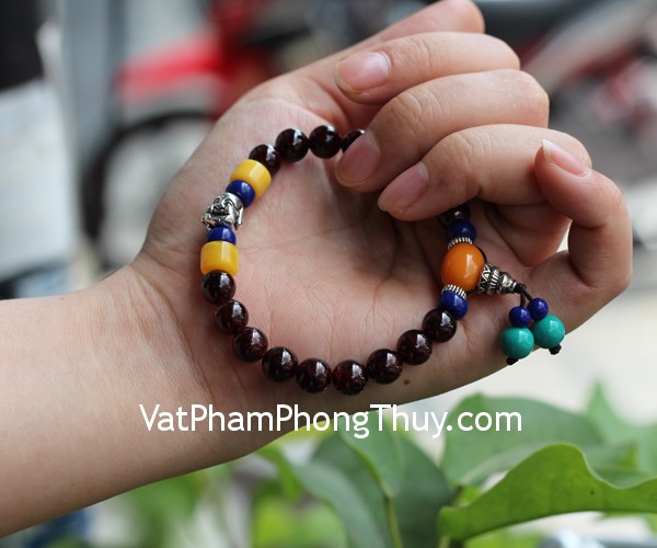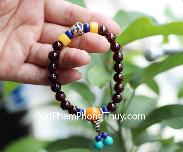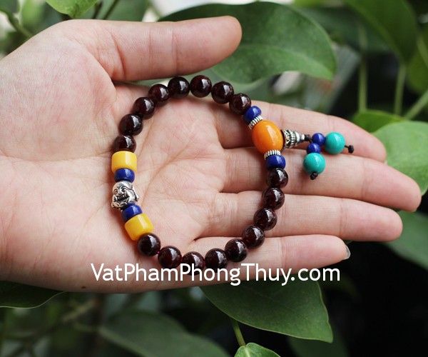 + Chất liệu và hoàn thiện: Chuỗi bi đá hạt lựu đỏ, đầu Phật bằng hợp kim (tại Việt Nam)
