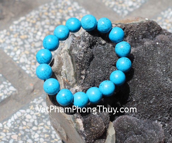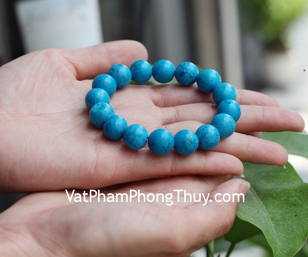 + Chất liệu và hoàn thiện: Chuỗi đeo tay đá ngọc lam turquoise cỡ lớn (tại Việt Nam).