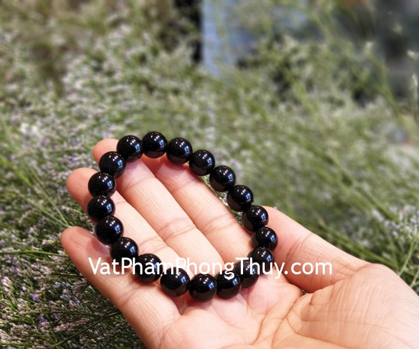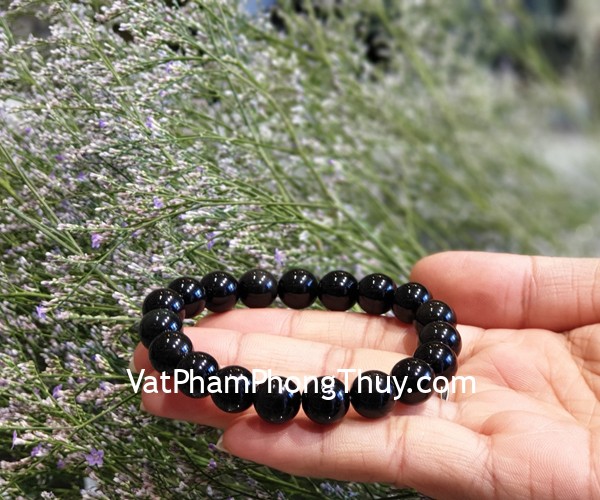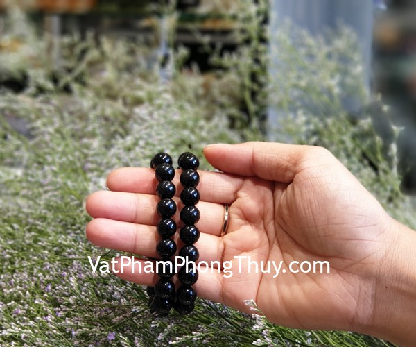+ Chất liệu và hoàn thiện: Chuỗi hắc ngà (thạch anh đen) trơn Nam Mỹ cỡ nhỏ (tại Việt Nam).