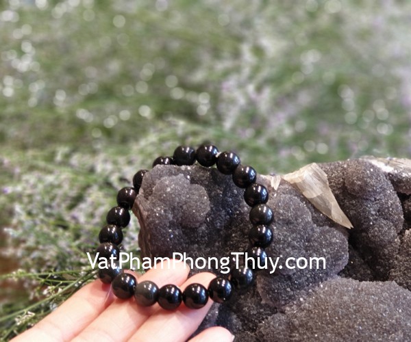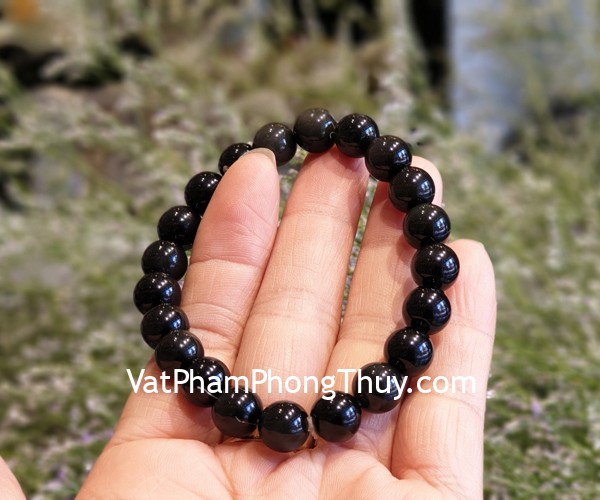 + Chất liệu và hoàn thiện: Chuỗi hắc ngà (thạch anh đen) trơn Nam Mỹ cỡ nhỏ (tại Việt Nam).