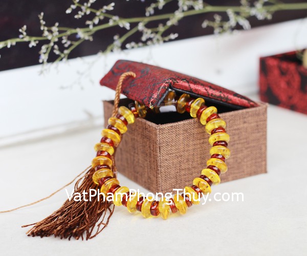 + Chất liệu và hoàn thiện: Chuỗi Hổ Phách hạt đĩa nâu vàng A (tại Việt Nam)