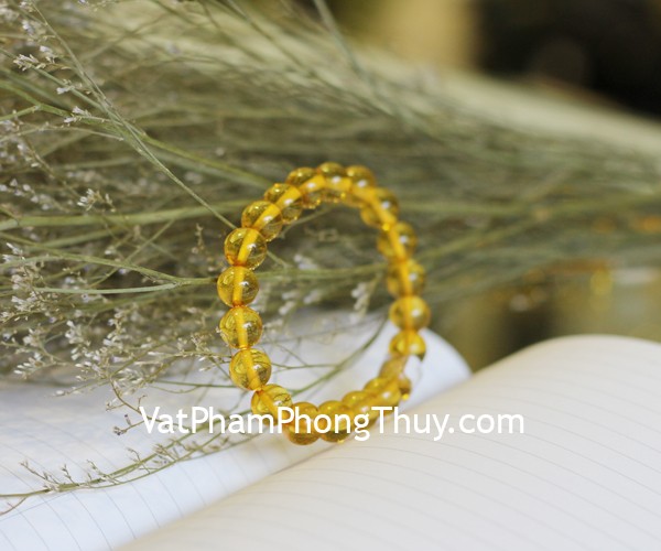 + Chất liệu và hoàn thiện: Chuỗi Hổ Phách hạt vàng trong A++ (tại Việt Nam)