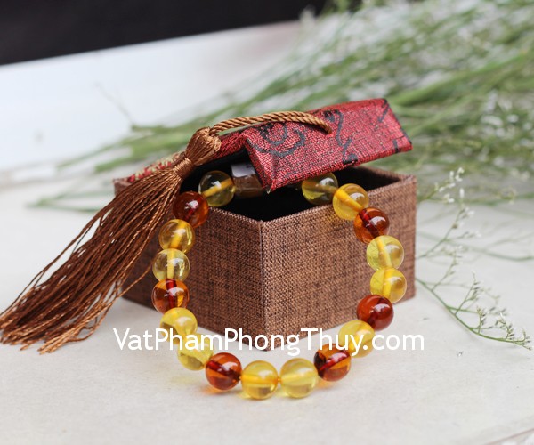 + Chất liệu và hoàn thiện: Chuỗi Hổ Phách nâu vàng A++ (tại Việt Nam)