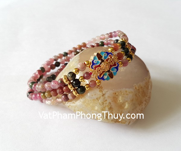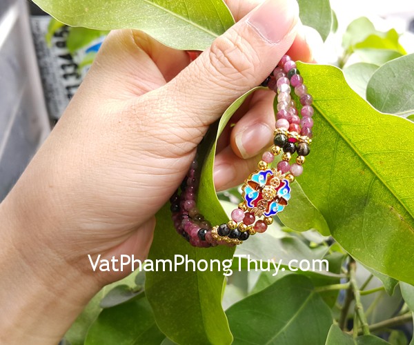 + Chất liệu và hoàn thiện: Chuỗi hồng lục bảo nhiều màu, đính kèm hợp kim dơi đồng tiền (tại Việt Nam).