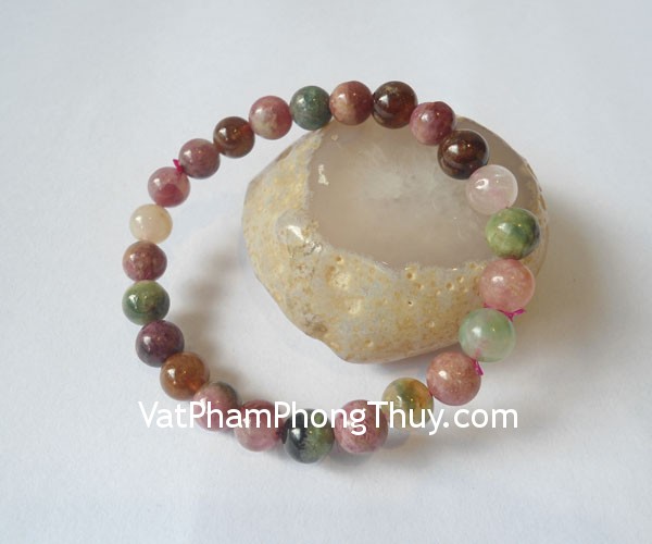 + Chất liệu và hoàn thiện: Chuỗi đá ngọc hồng lục bảo Tourmaline (tại Việt Nam).