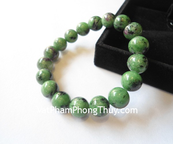 + Chất liệu và hoàn thiện: Chuỗi hồng lục bảo (Ruby xanh, Nam Mỹ).