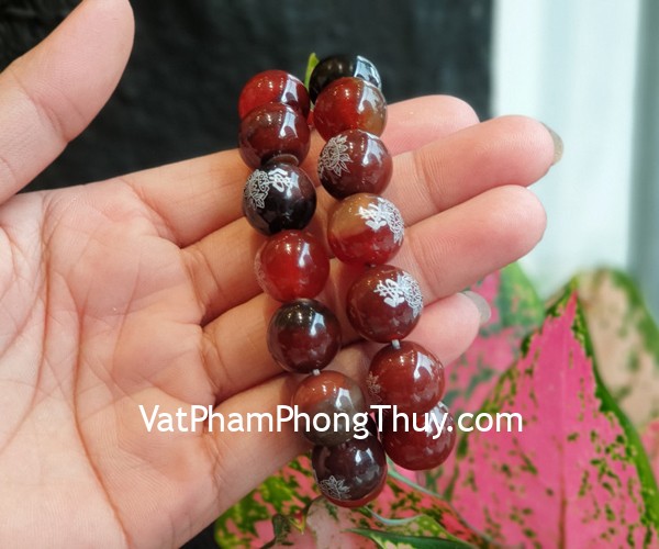 Chuỗi mã não khắc sen Phật 14 li S6844