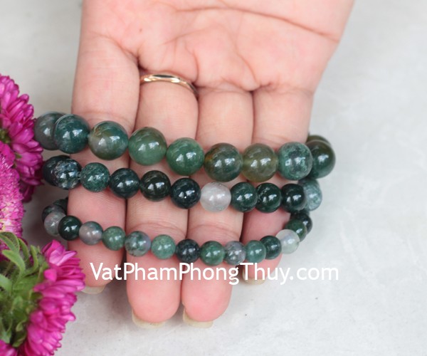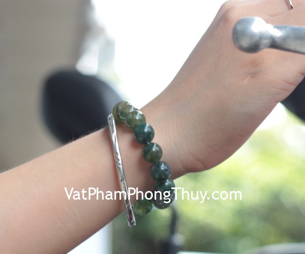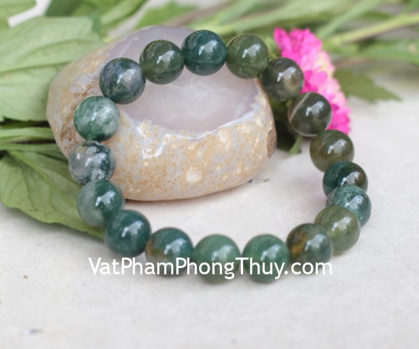 + Chất liệu và hoàn thiện: Chuỗi đeo tay đá mã não rong biển (tại Việt Nam).