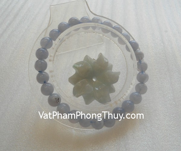 + Chất liệu và hoàn thiện: Chuỗi đá mã não xanh dương nhạt (tại Việt Nam). + Kích thước: 27 bi nhỏ + Khối lượng: 13.5g + Ý nghĩa: Biểu tượng may mắn về công việc, bổ trợ tốt cho sức khỏe. + Cách sử dụng: Trang sức chuỗi đeo tay.