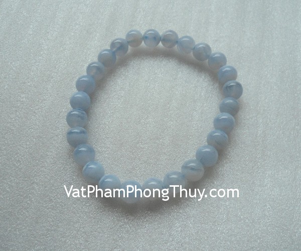 + Chất liệu và hoàn thiện: Chuỗi đá mã não xanh dương nhạt (tại Việt Nam).