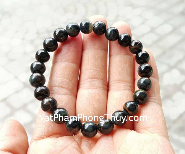 + Chất liệu và hoàn thiện: Chuỗi đá mắt mèo đen mun hạt tròn nhỏ. (tại Việt Nam)