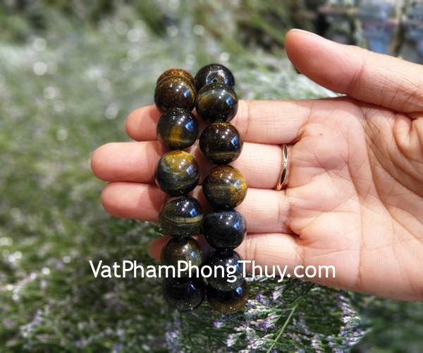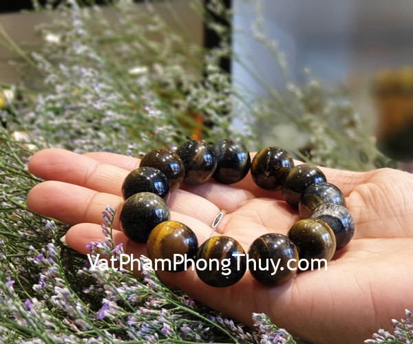 + Chất liệu và hoàn thiện: Chuỗi đá mắt mèo đen xám size 16 li (tại Việt Nam).
