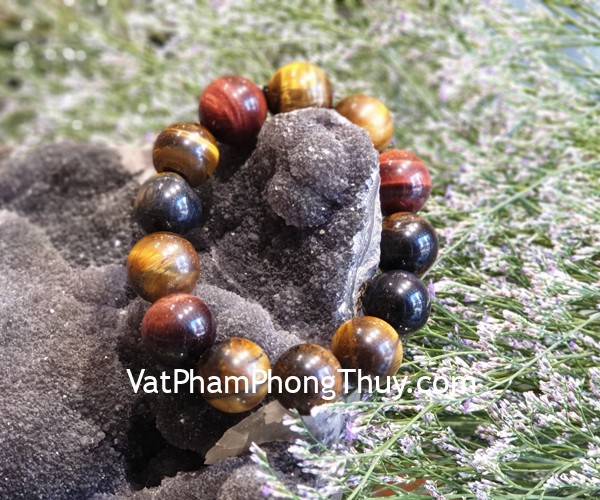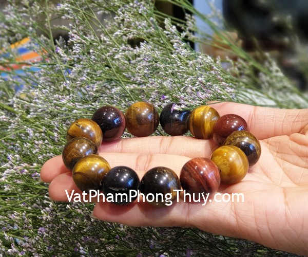 + Chất liệu và hoàn thiện: Chuỗi đá mắt mèo đỏ đen đa sắc 16 li (tại Việt Nam).