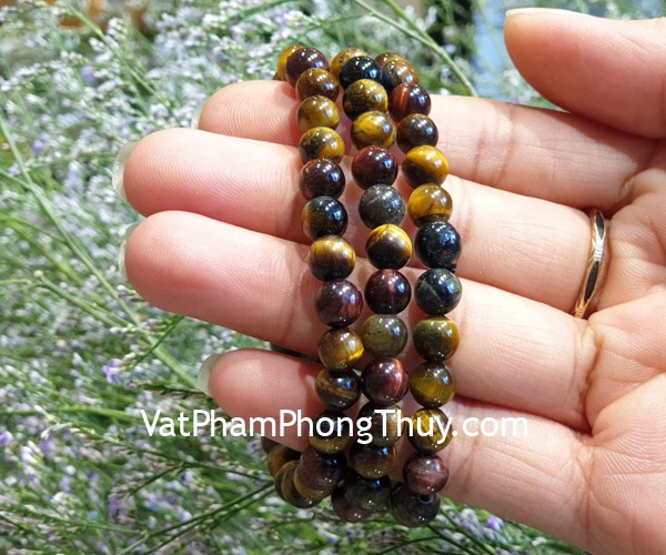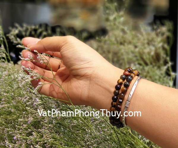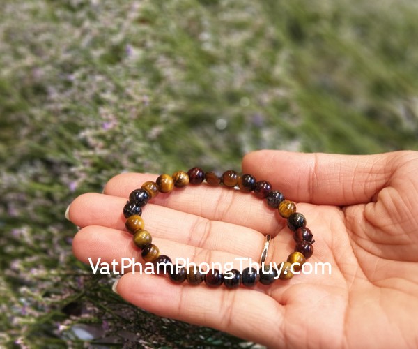 + Chất liệu và hoàn thiện: Chuỗi đá mắt mèo đỏ đen đa sắc 6 li (tại Việt Nam).