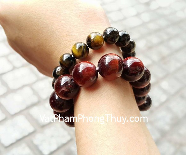 + Chất liệu và hoàn thiện: Chuỗi đá mắt mèo đỏ đô hạt tròn. (tại Việt Nam)