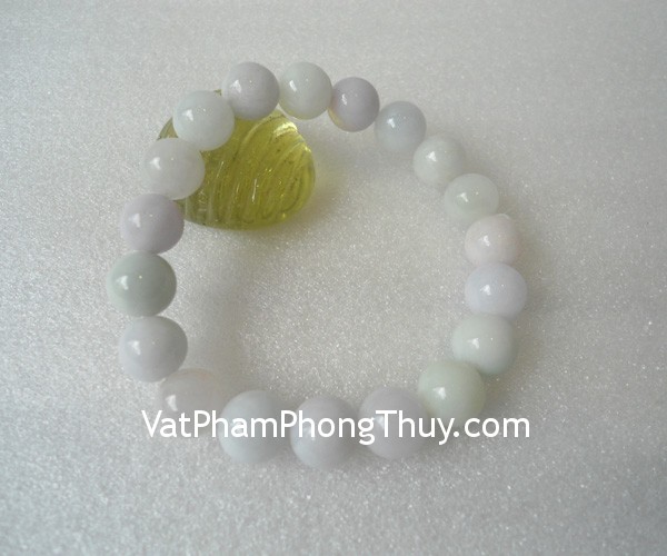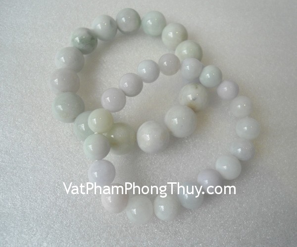 + Chất liệu và hoàn thiện: Chuỗi đeo tay ngọc phỉ thúy vân trắng (tại Việt Nam).