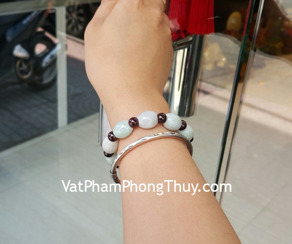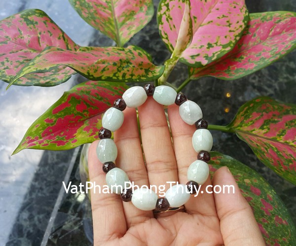 + Chất liệu và hoàn thiện: Chuỗi ngọc Phỉ Thúy mix hạt đá hạt lựu (tại Việt Nam).