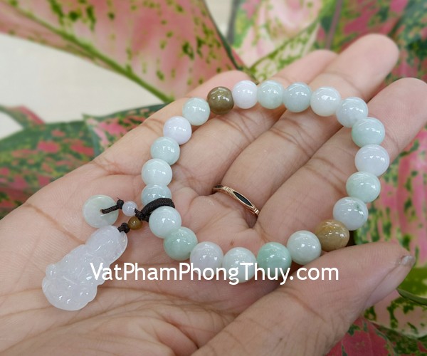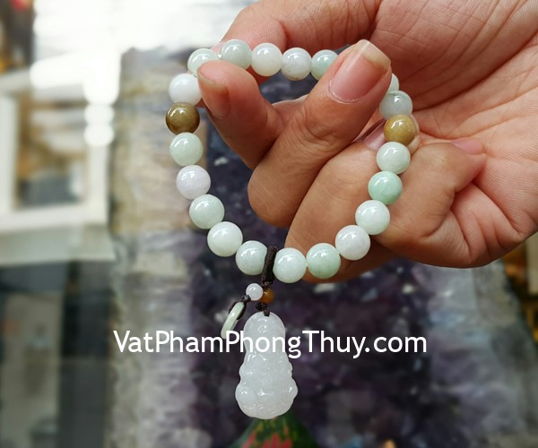 + Chất liệu và hoàn thiện: Chuỗi phỉ thúy có Phật Quan Âm (tại Việt Nam).