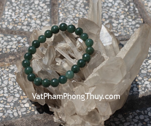 Chất liệu và hoàn thiện: Chuỗi đeo tay ngọc Phỉ Thúy vân xanh đậm cỡ nhỏ (tại Việt Nam).