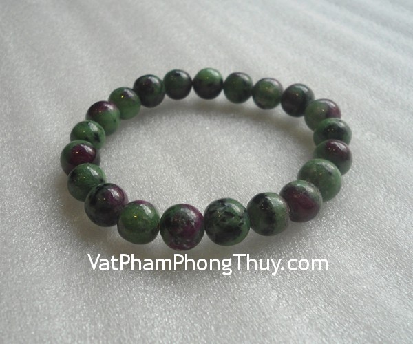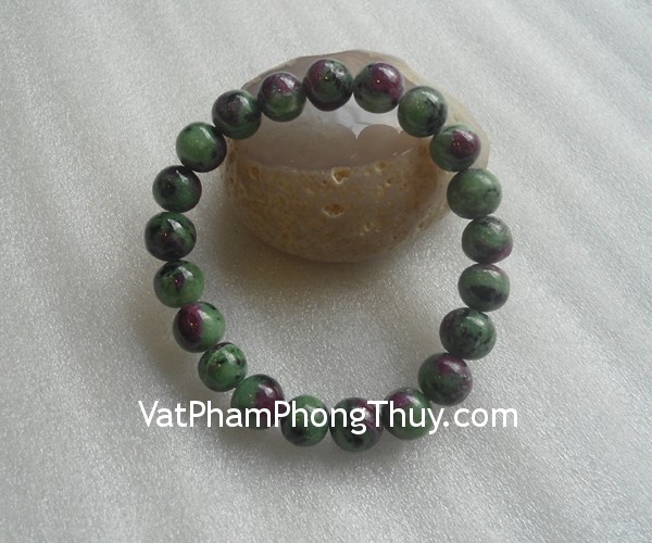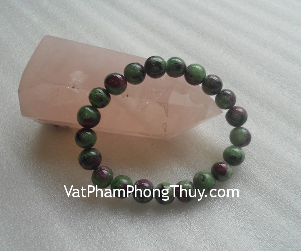 + Chất liệu và hoàn thiện: Chuỗi đá ngọc hồng lục bảo ruby xanh (gần với ruby).