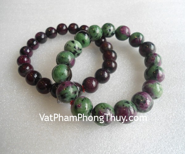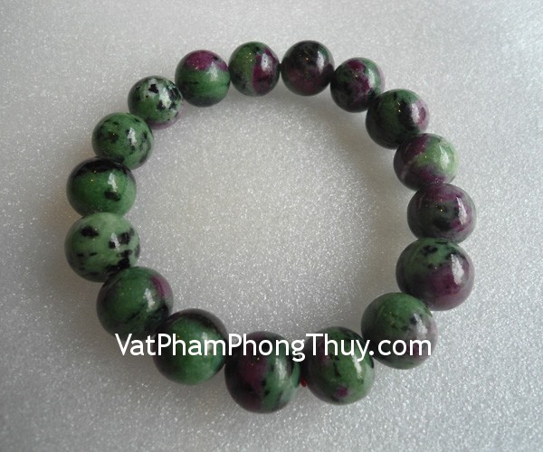 + Chất liệu và hoàn thiện: Chuỗi đá ngọc hồng lục bảo ruby xanh (gần với ruby).