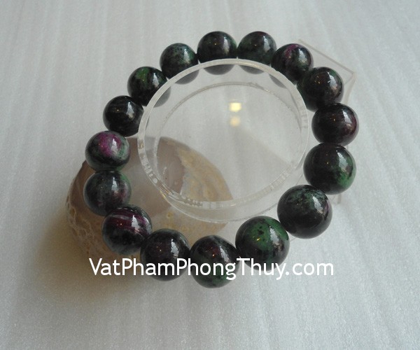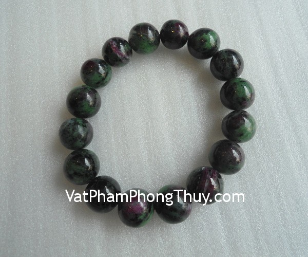 + Chất liệu và hoàn thiện: Chuỗi đá ngọc hồng lục bảo ruby xanh (gần với ruby).