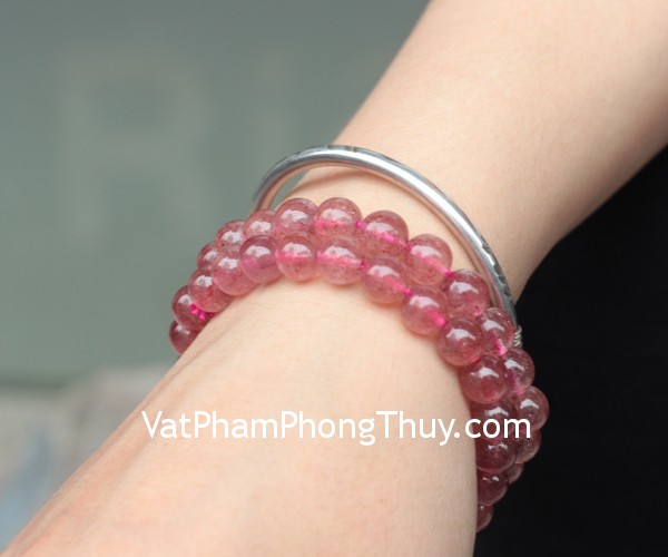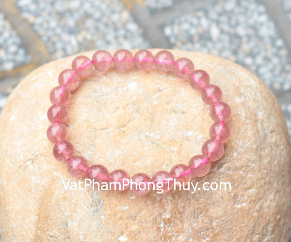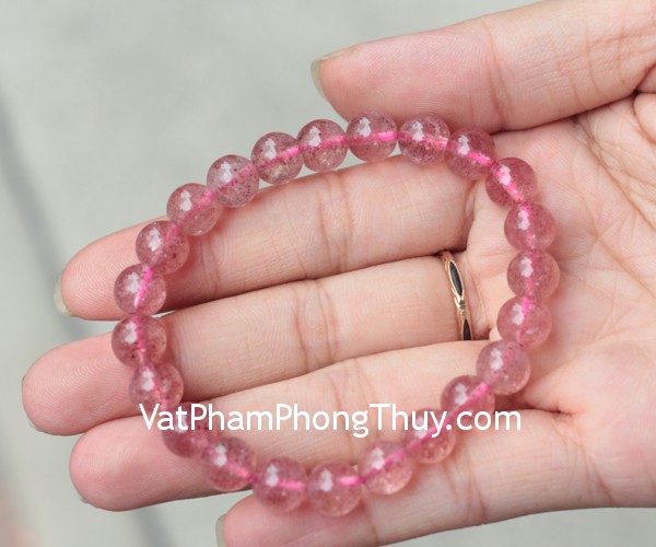 + Chất liệu và hoàn thiện: Chuỗi thạch anh dâu đỏ Uruguay, loại đặc biệt của thạch anh hồng, vân đỏ li ti ẩn trong màu hồng của thạch anh (tại Việt Nam).