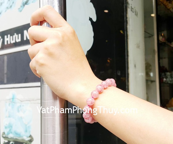 + Chất liệu và hoàn thiện: Vòng thạch anh dâu hồng Nam Mỹ, loại đặc biệt của thạch anh hồng, vân hồng li ti ẩn trong màu hồng dâu của đá (tại Việt Nam).