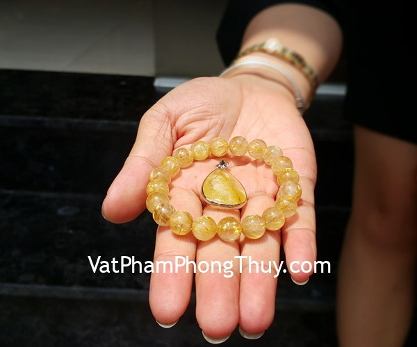 + Chất liệu và hoàn thiện: Chuỗi thạch anh tóc vàng tươi Uruguay (tại Việt Nam).
